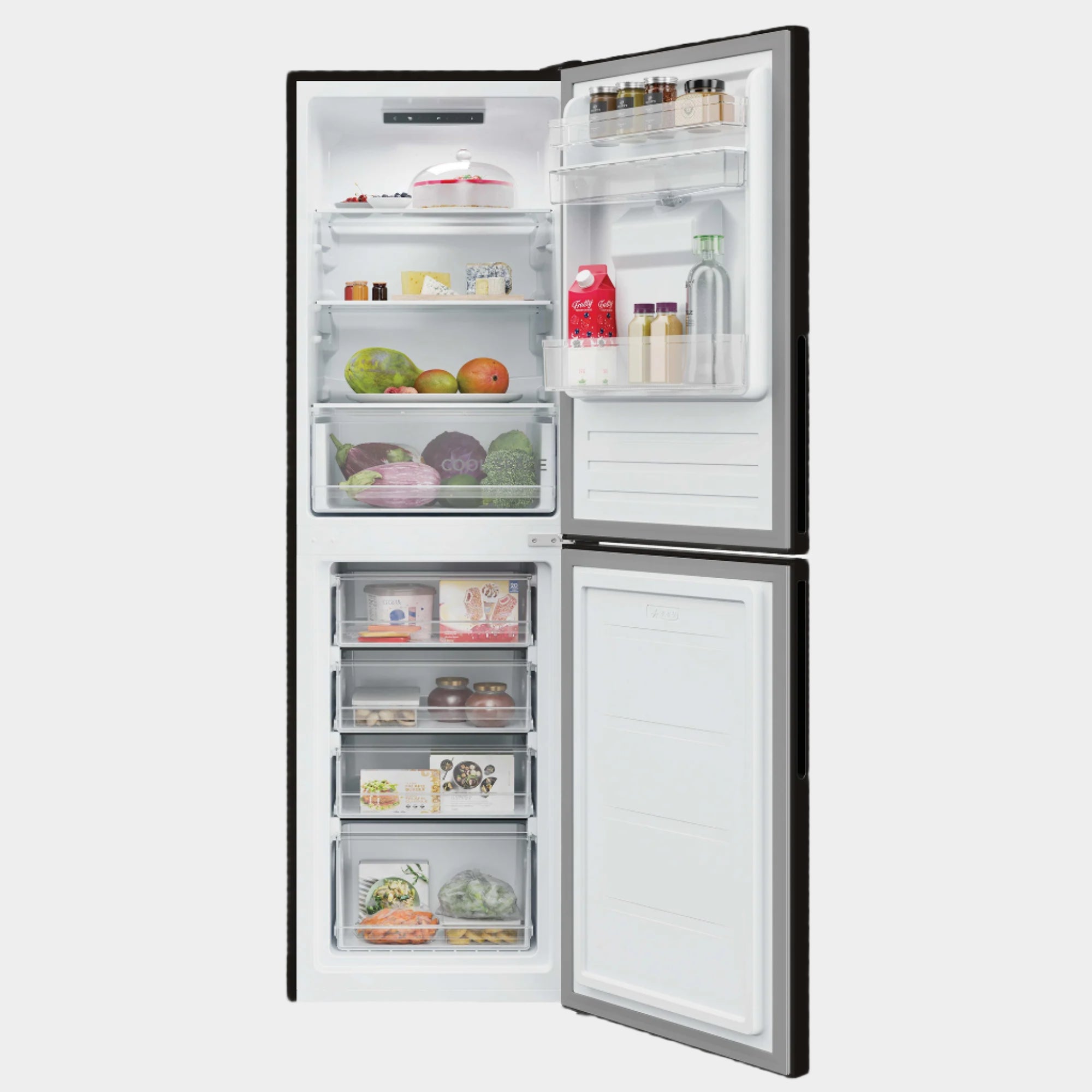 The H-Fridge 300- Black - 246L is a slim 55 cm refrigerator, ideal for small kitchens or limited spaces. Its Low Frost technology and internal display with degree-by-degree temperature control make it smart and easy to use.
